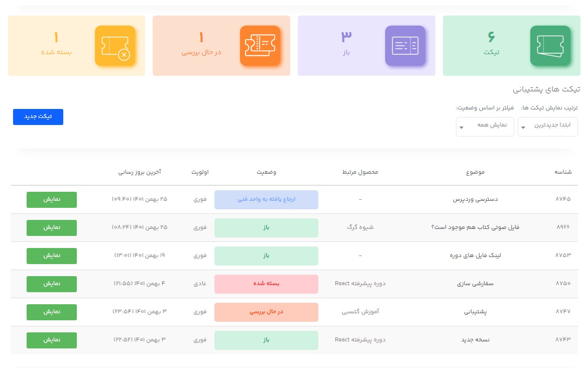 • قابلیت تعیین پشتیبان برای پاسخگویی تیکت ها